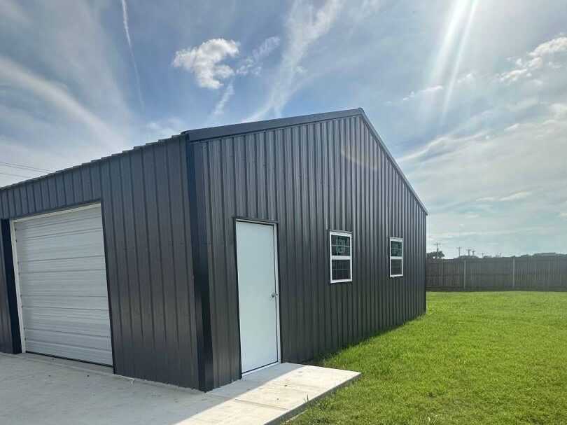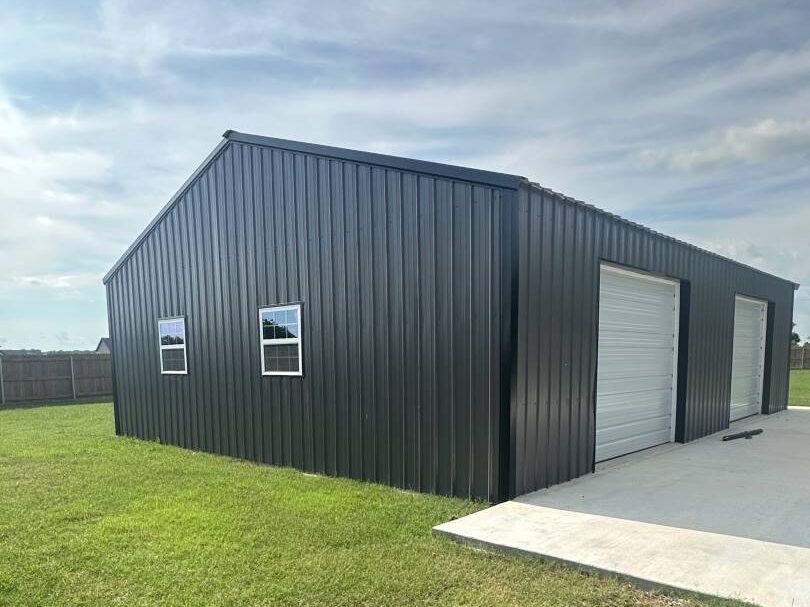 Car Collection Storage Keep your car safe with plenty of space for repairs and maintaince too! Project ID DM013545122024 Location Mounds, Oklahoma Dimensions 30'W x 40'L x 10'H Color Scheme Sides - Charcoal Roof - Black Trim - Black Features Concrete Slab Panel Loc Plus Metal Siding Vinyl Backed Fiberglass Insulation (2) Overhead Doors (4) Windows (1) Steel Entry Doors